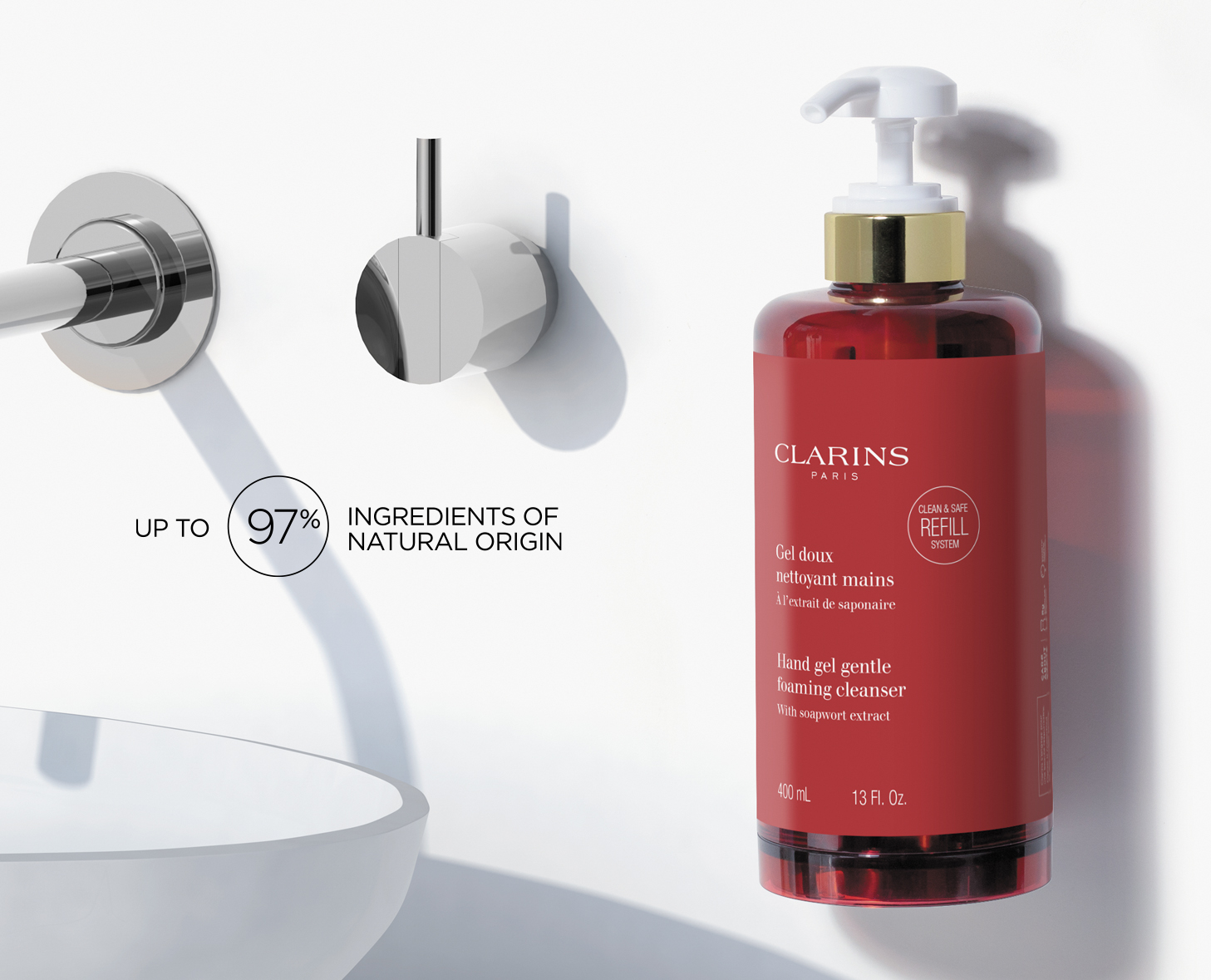 Eau Dynamisante, at the heart of nature, a marvelous alchemy of a fragrant accord of essential oils and 7 plant extracts perfumes the entire Clarins line of home care products. Perfect for getting the day off to a good start or fighting off a bout of temporary fatigue. A real energy booster!