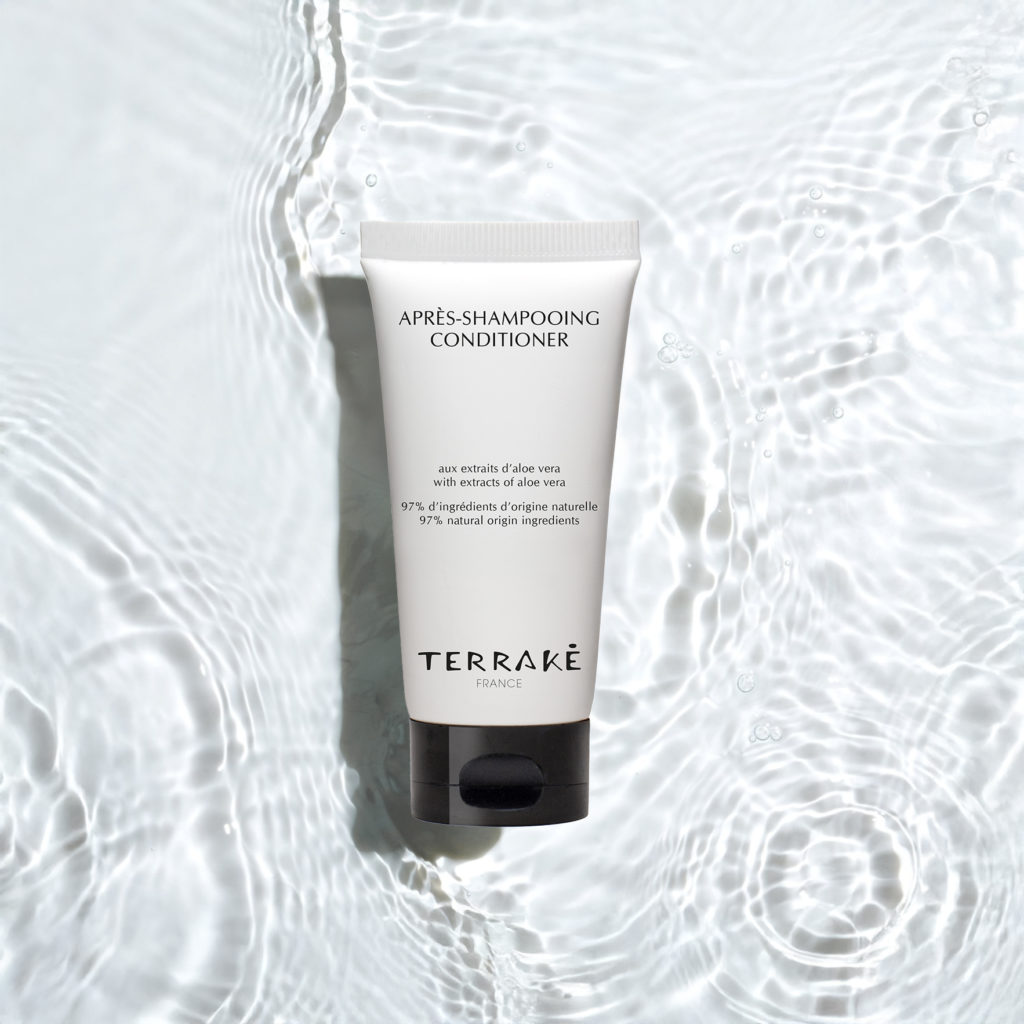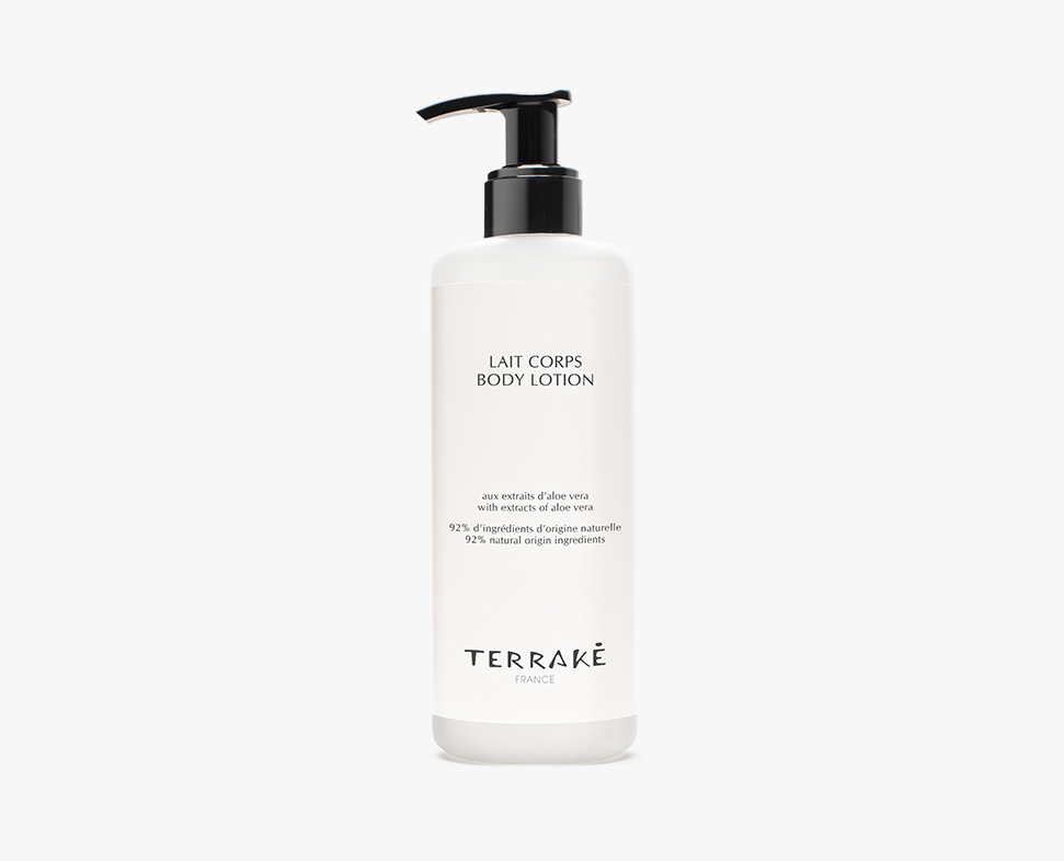 The Terraké hotel line takes up the brand's elegant, sober aesthetic. The products are enriched with aloe vera, known for its moisturizing and soothing properties.